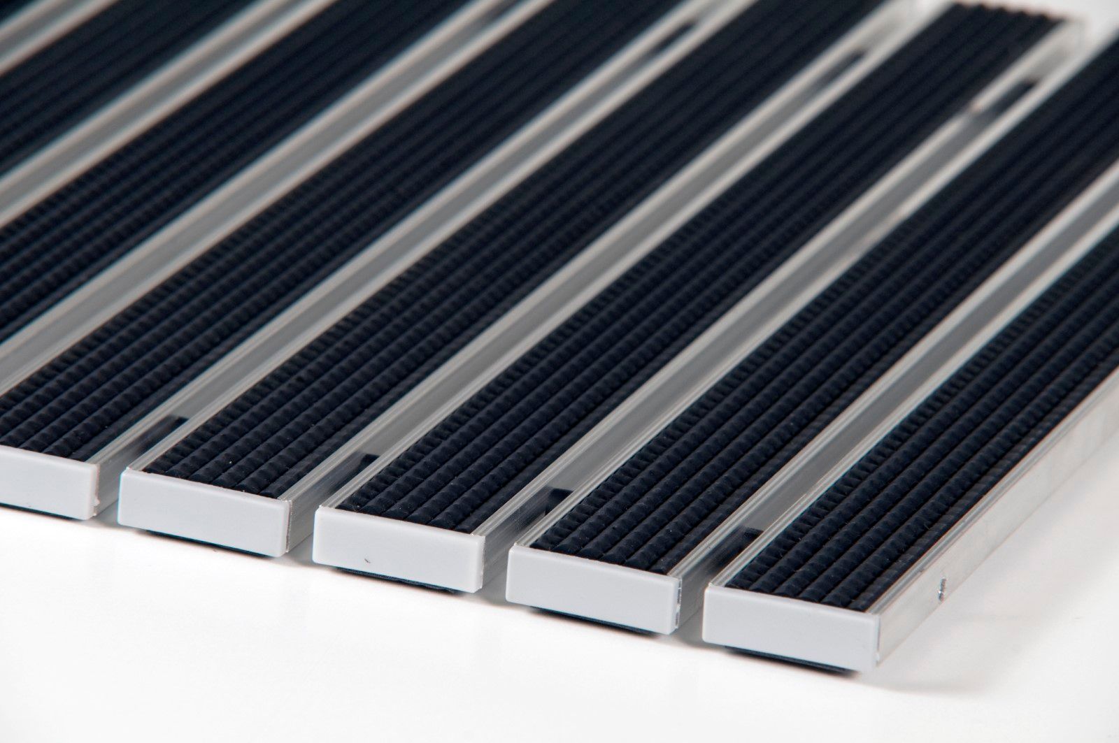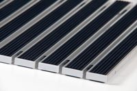 Die Basis der Fußmatte TENWELL 10 mm STANDARD bilden 27 mm breite Alu-Profile, die untereinander mit einem Niroseil verbunden und durch Gummi-Zwischenringe getrennt sind. Dies ermöglicht das Zusammenrollen der Fußmatte und damit eine leichtere Handhabung bei der Reinigung. In den Alu-Profilen werden Gummi - oder Textilstreifen fixiert. Die einzelnen Füllstreifen können beliebig kombiniert und nach der Abnutzung ausgetauscht werden. Nicht für Drehtüren geeignet.