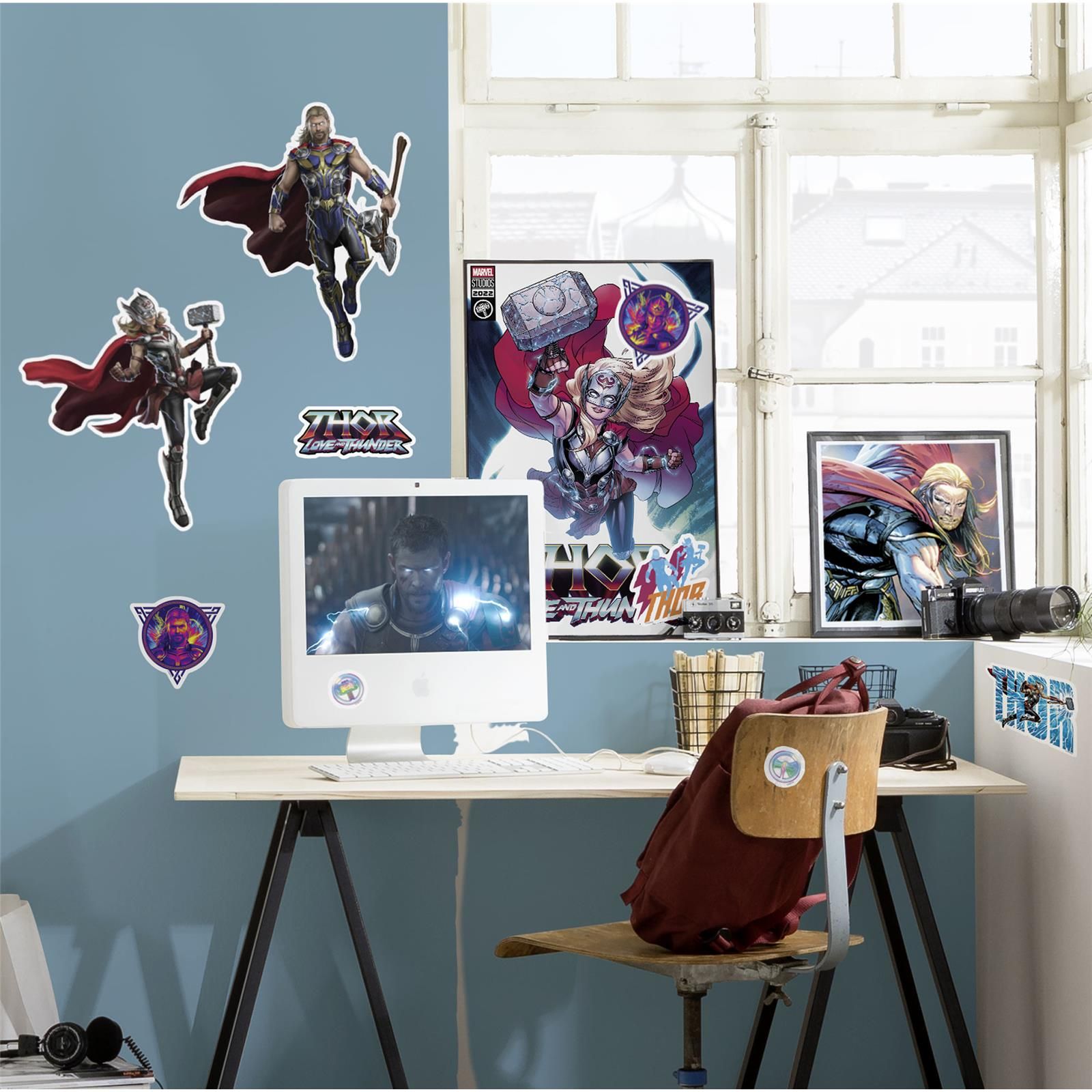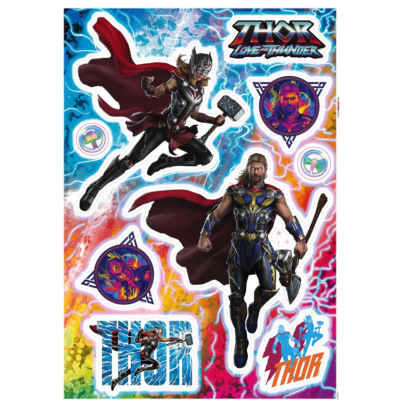 Ein Bild für die Götter! Thor und Mighty Thor vereinen sich auf dem Deco Sticker für die Wand und wirken als prächtige Filmkulisse.